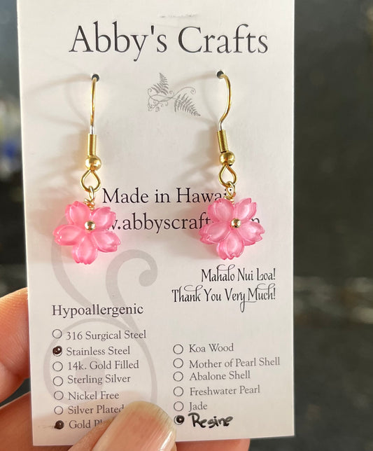 Pink flowers Gold Earrings