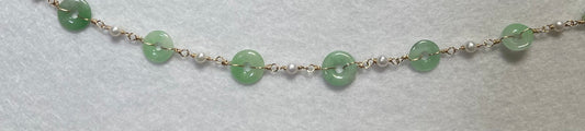 Jade and Pearl 14k. Filled Gold Choker Necklace