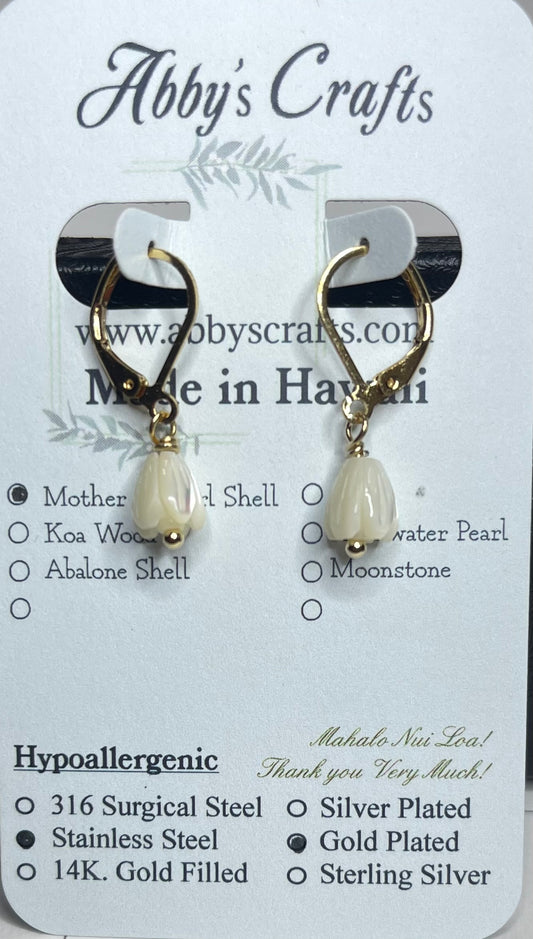 Pikake Flower white Mother pearl Shell earrings