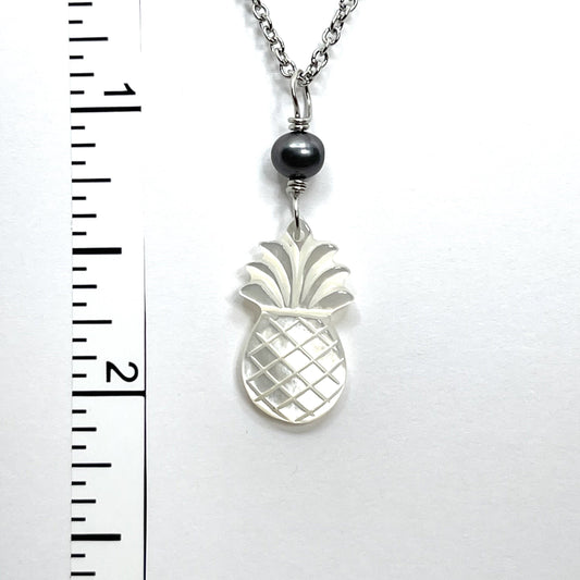 Pineapple White MOP Shell with Pearl silver Necklace